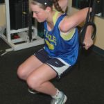 A compound movement focusing on the triceps, but also employing chest and shoulder muscles. This can be done nearly anywhere there’s a low raised surface of some sort. Beginners can do this with the feet on the floor and the knees bent, but as you progress, the feet can be elevated, and weights can even be placed on the lap. As with regular (parallel) dips, descend to the point where the shoulders are about even with the elbows… going lower is not necessary and may place excessive strain on the gleno-humeral joint. Avoid locking out in the top position.