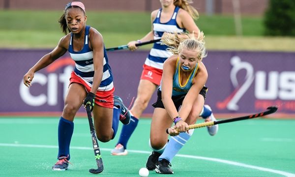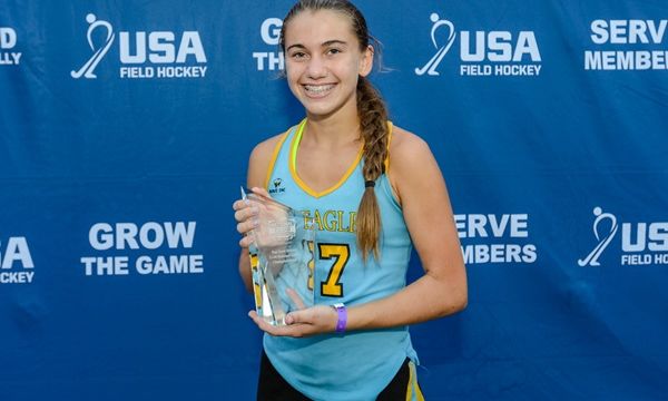 Moving on to the Under 19 age group, the talented W C Eagles Team set about capturing the U19 title with wins against South Jersey Edge (New Jersey) 9 – 0, Rush (California) 8 – 0, and North East Elite (Massachusetts) 3 – 1, in their Pool games. IFHCK (Kentucky) was their scalp, 8 – 0, in the Quarter Final. Beating TYCOYO (Virginia) 4 – 0 in the Semi-Final, W C Eagles rolled into the final where they beat neighbors XCalibur (Pennsylvania) 4 – 0 to win the Under 19 National Club Championship with a 36 – 1 goal difference, and complete the sweep of the National Age Groups. Paityn Wirth was awarded the High Goal Scorer Award with 8 goals.