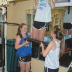 A compound movement targeting the back and biceps, with emphasis on eccentric muscle activity. Knees (not shins) should be centered on knee-board with thighs kept vertical. Spotter(s) should provide only enough assistance to enable lifter to achieve top position with full effort. As soon as lifter is in top position, spotters should quickly lower knee-board to bottom position. Lifter will lower herself slowly to the knee-board (full extension of arms) and process will be repeated. Grip may be overhand (pull-up, emphasizing back), underhand (chin-up, emphasizing biceps) and parallel/neutral. Ultimate objective is to progress to doing these unassisted.