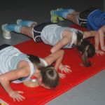 Undoubtedly the most unpopular exercise in existence, the push-up is a fabulous conditioning movement which has been abused in purpose (punishment) and execution (those who hate them invariably can’t do them correctly). But this simple movement not only targets the chest, shoulders and triceps (the “pushing muscles”) but develops the same core stability as the Plank exercise (the static pushup position, sometimes done on the forearms). These require no equipment, and can be done anywhere, anytime, by anyone with arms, and virtually anyone who practices them faithfully can progress to the ability to perform dozens -which any serious athlete should be able to do. Keep the body straight, lead with the chest, go to down to at least parallel.